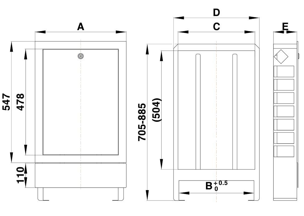 The distribution cabinet is an aesthetic and practical solution for installing components of underfloor heating, cooling, and sanitary systems. It allows easy access to the manifolds while also providing a practical space for additional components (valves, etc.). It is made of high-quality galvanized sheet steel and is powder-coated. The cabinet depth can be adjusted with adjustable brackets, and the front doors can be removed.