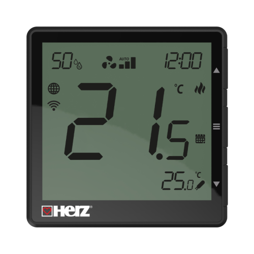 HERZ Thermiq FanNova krmilnik nudi napredno regulacijo za fan coil enote in talne reže (trench grelce), podpirajoč konfiguracije z 2- in 4-cevnimi vezavami. Namenjen sodobnemu upravljanju udobja, zagotavlja natančno regulacijo temperature in vlažnosti s pomočjo optimiziranih krmilnih algoritmov. Krmilnik omogoča fleksibilno delovanje 3‑stopenjskih ventilatorjev 230 V in samodejno prilagaja hitrost ventilatorja glede na potrebo. Integrirane funkcije proti zmrzovanju in pregrevanju izboljšujejo varnost, vgrajen ECO način pa pomaga zmanjševati porabo energije in obratovalne stroške.