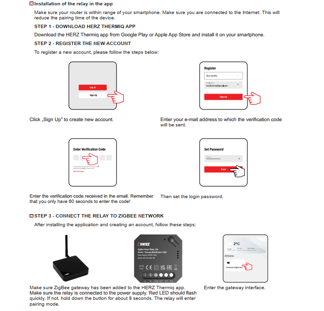 Rele se brezhibno integrira z aplikacijo HERZ Thermiq in podpira glasovno upravljanje prek Amazon Alexe in Google Home, kar omogoča prilagodljivo in inteligentno upravljanje doma.