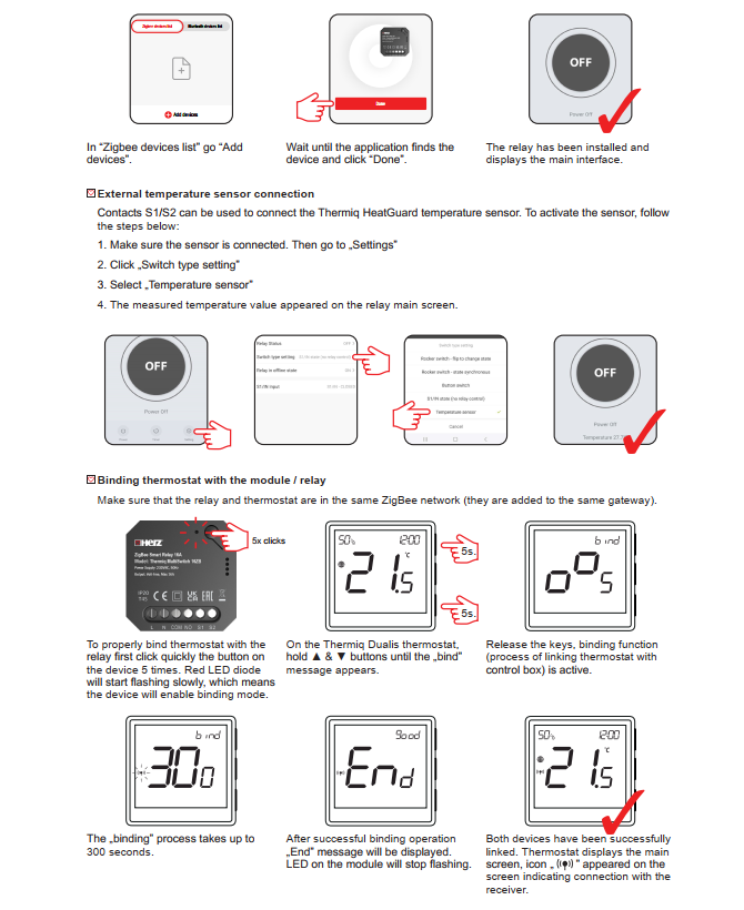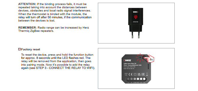 HERZ MultiSwitch ZigBee rele omogoča brezžično upravljanje naprav v pametnem domu in podpira pametne avtomatizacije s temperaturnim senzorjem HERZ Thermiq Heat Guard. Kompaktna zasnova omogoča namestitev v standardne škatle ali na DIN letev, za delovanje pa potrebuje ZigBee gateway. Integrira se z aplikacijo HERZ Thermiq in podpira glasovno upravljanje prek Amazon Alexe in Google Home.