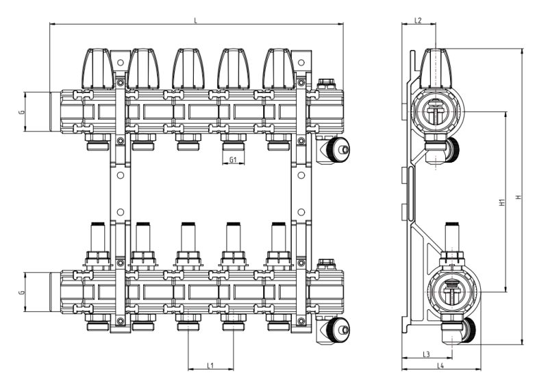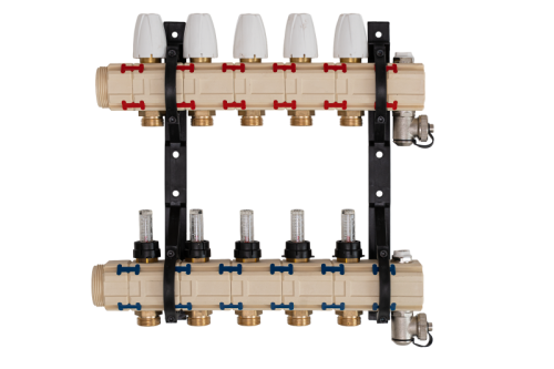 Na dovodnem in povratnem razdelilniku je nameščen izpustni ventil z navojem G3/4. Dodatno je mogoče uporabiti tudi cevno priključnico. Ročico ventila upravljate s posebnim ključem (za odpiranje zavrtite v nasprotno smer urinega kazalca, za zapiranje pa v smeri urinega kazalca).