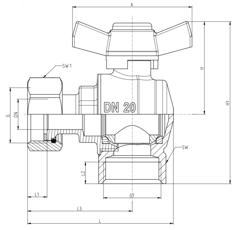 | ident | EAN | DN | PN | G [in] | L [mm] | L1 [mm] | L2 [mm] | L3 [mm] | H | A | Sw | Sw1 | упаковка | |